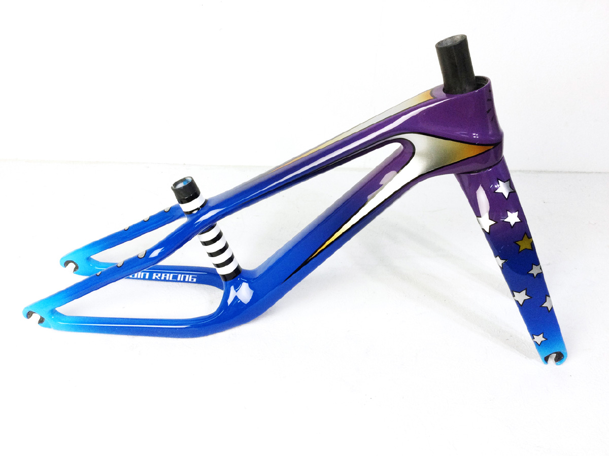 キックバイクにもカーボン化の波が押し寄せてきているようで、カーボンフレームもメジャーになってきているようです。レースに付きものの傷や損傷も散見されるようですが、場合によってはレギュレーションでレースに出れない事もしばしば。