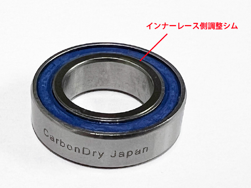 - ホイールベアリングを交換してアクスルを締め込んだ際に回転が重くなるなど、インナーレース側が内側に押されている症状の時、調整用シムでクリアランス調整してください。アクスルを締めて重くなったので、緩めて調整するという方法はしないようにお願い致します。